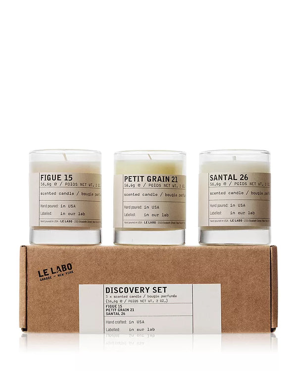 Three cult-favorite scents, one unforgettable trio. The Le Labo Candle Discovery Set brings moody florals, smoky woods, and quiet luxury into every corner — perfect for gifting, or keeping all to yourself.