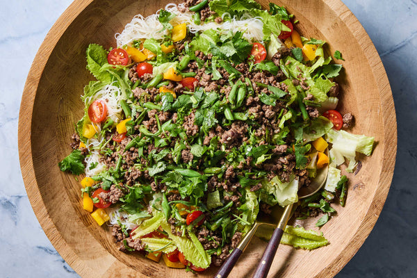 Bright, bold, and beautifully balanced, Laab Noodle Salad is the kind of dish that wakes up your tastebuds. Toss rice noodles with lime juice, fish sauce, toasted rice powder, fresh herbs (mint, cilantro, Thai basil), and your protein of choice — ground chicken, pork, or tofu all shine. Top with chili flakes, crunchy shallots, and a little love. ✨ For the full NYT version, trust — it's worth it: